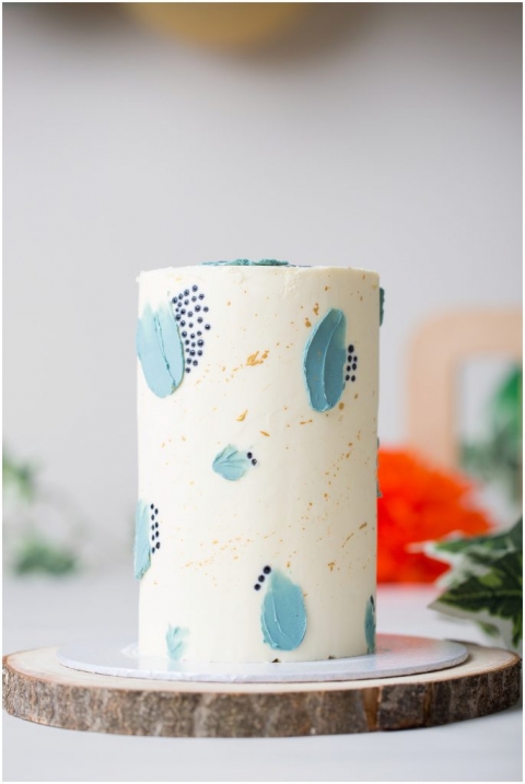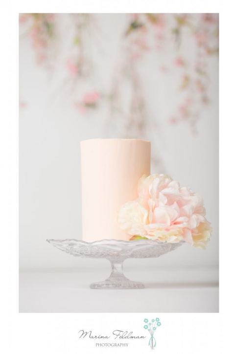 Flat cakes such as sheet cakes don’t photograph well, because the side of the cake is all that is seen from the photographer’s perspective. A tall cake is better, but there is no need for a very large one. A 4 inch cake is best for photos!
